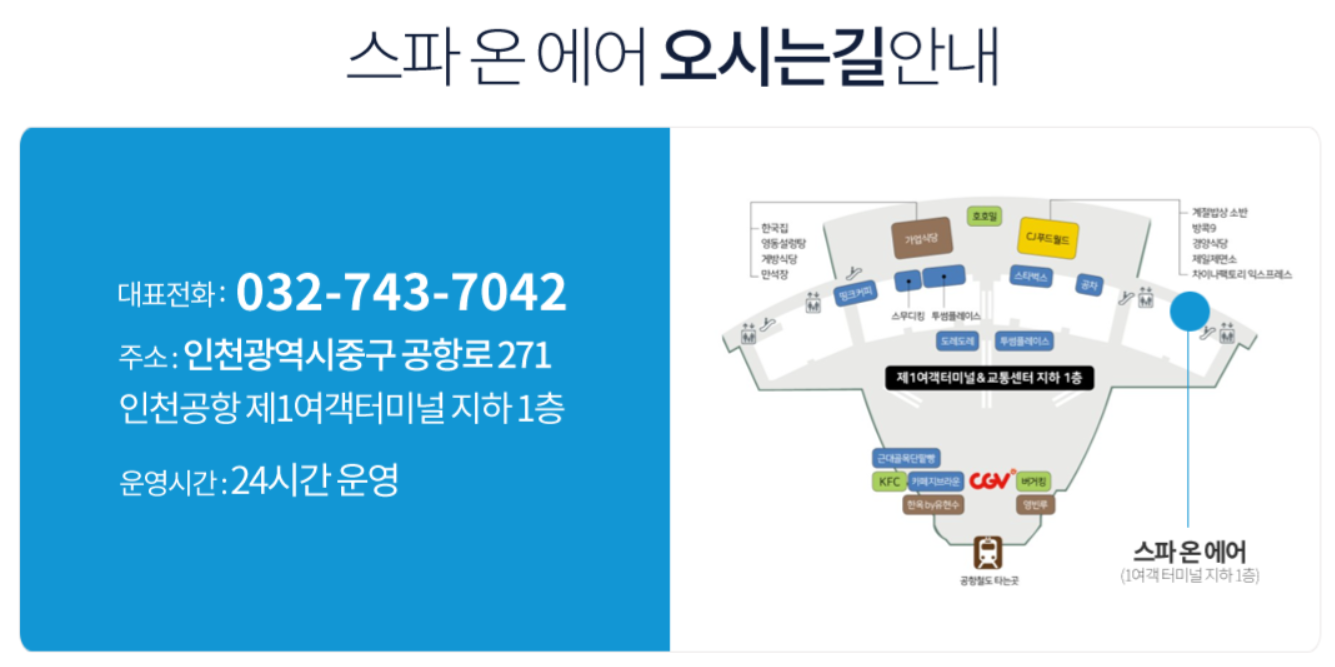2023년 4월1일 재오픈, 1여객터미널 인천공항 사우나, 프리미엄 스파 24시간 운영.