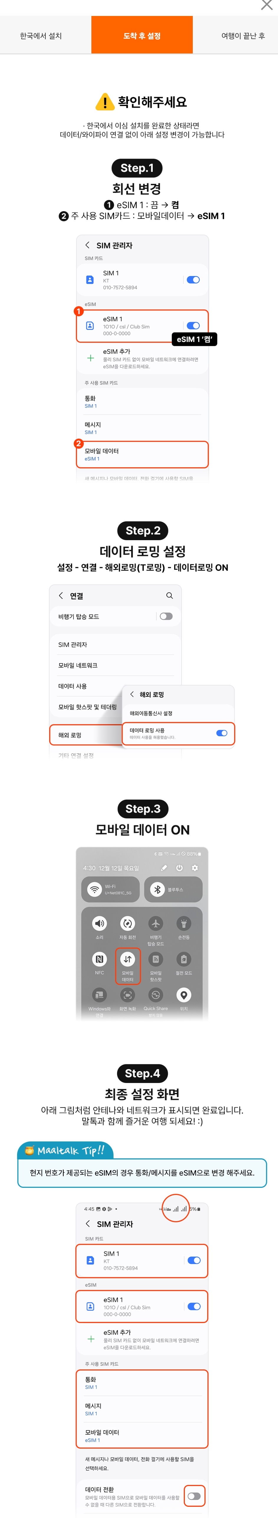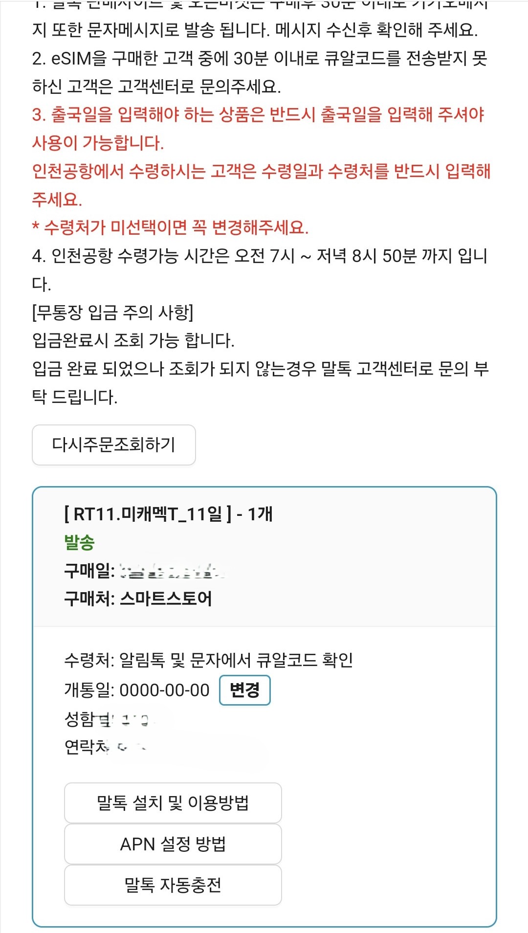 일단 출국전에 개통일 입력까지 완료 하면 됩니다.