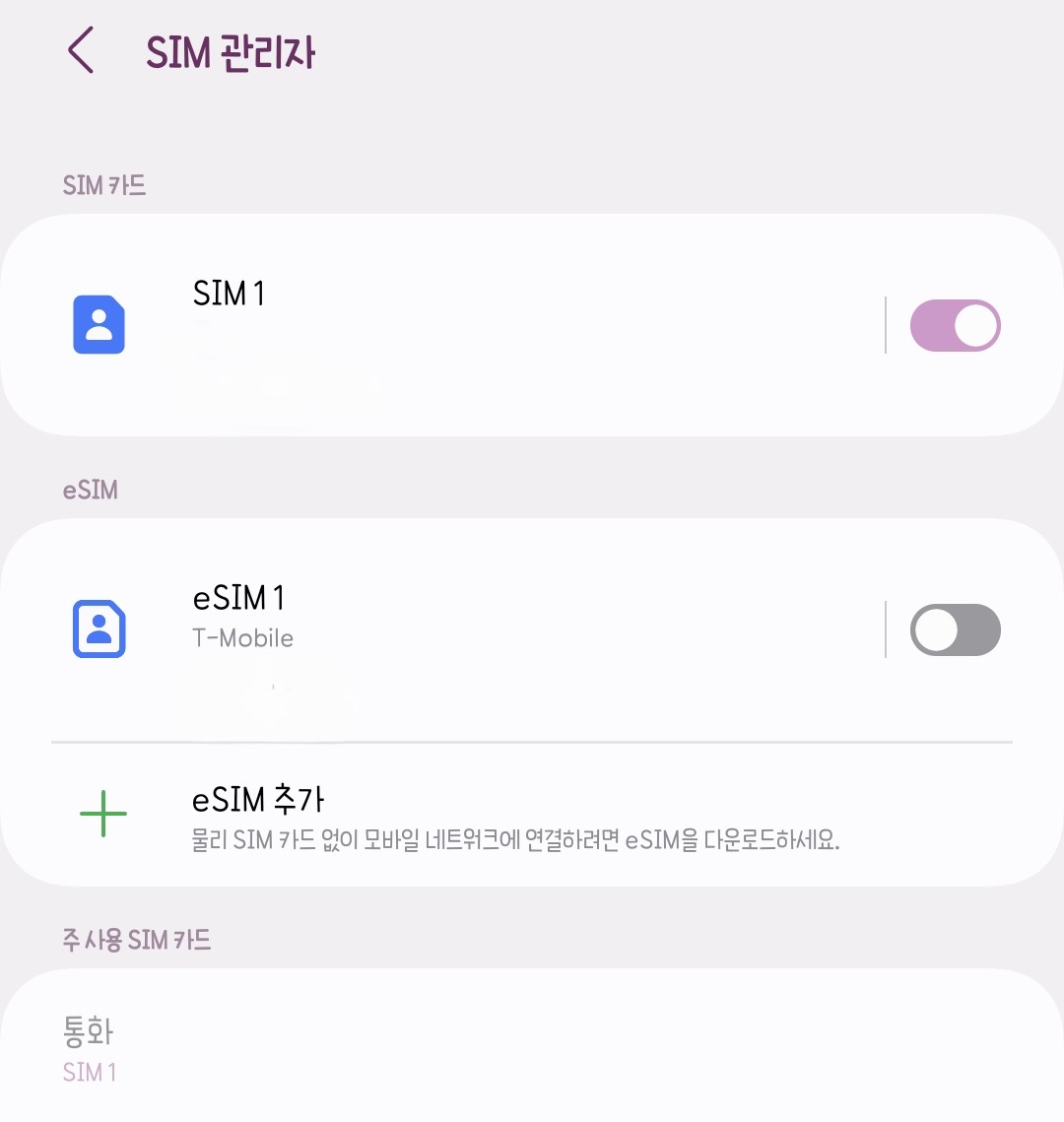 SIM 관리자에서 eSIM 선택후